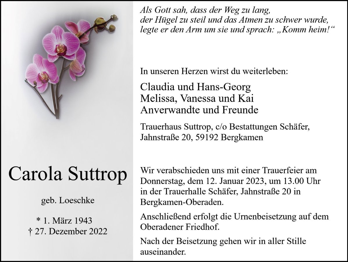 Carola Suttropgestorben am 27. Dezember 2022