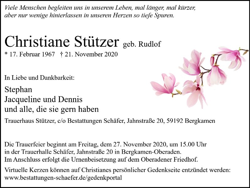 Frau Christiane Stützergestorben am 21. November 2020