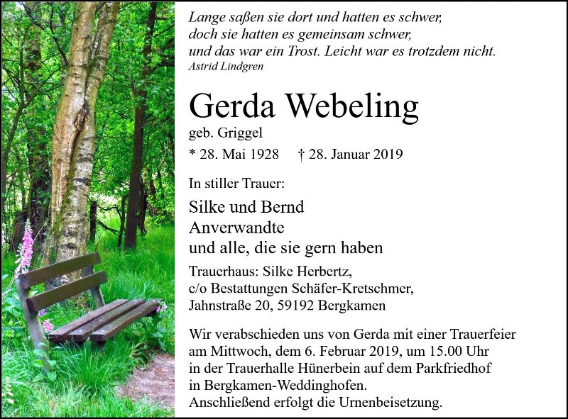 Frau Gerda Webeling geb. Griggel