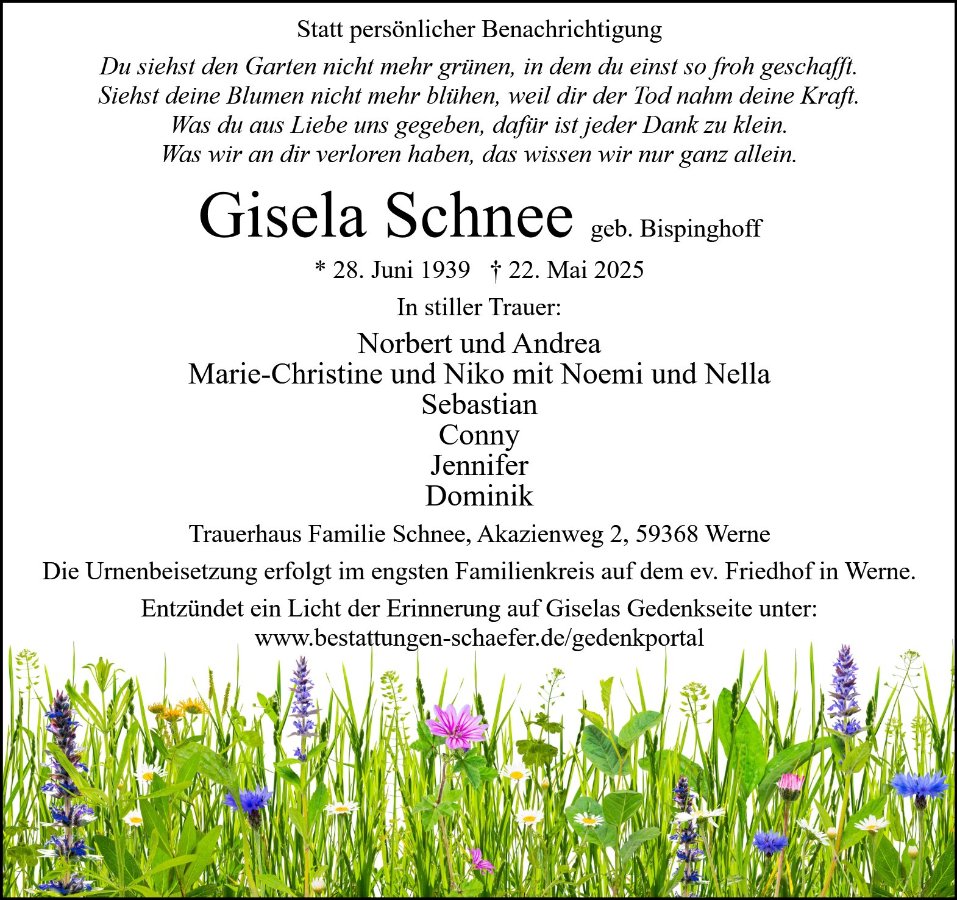 Gisela Schneegestorben am 22. Mai 2025
