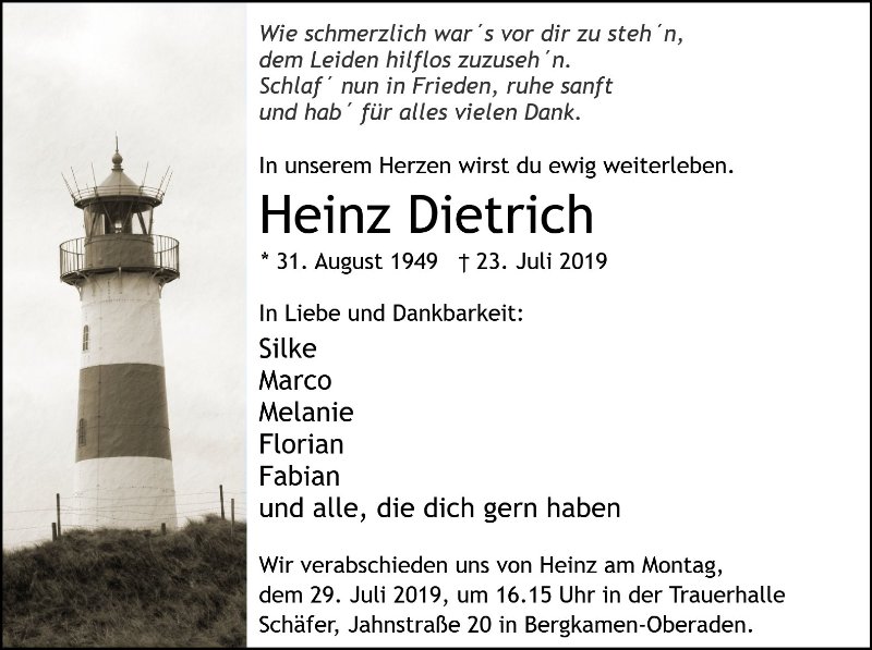Herr Heinz Dietrichgestorben am 23. Juli 2019
