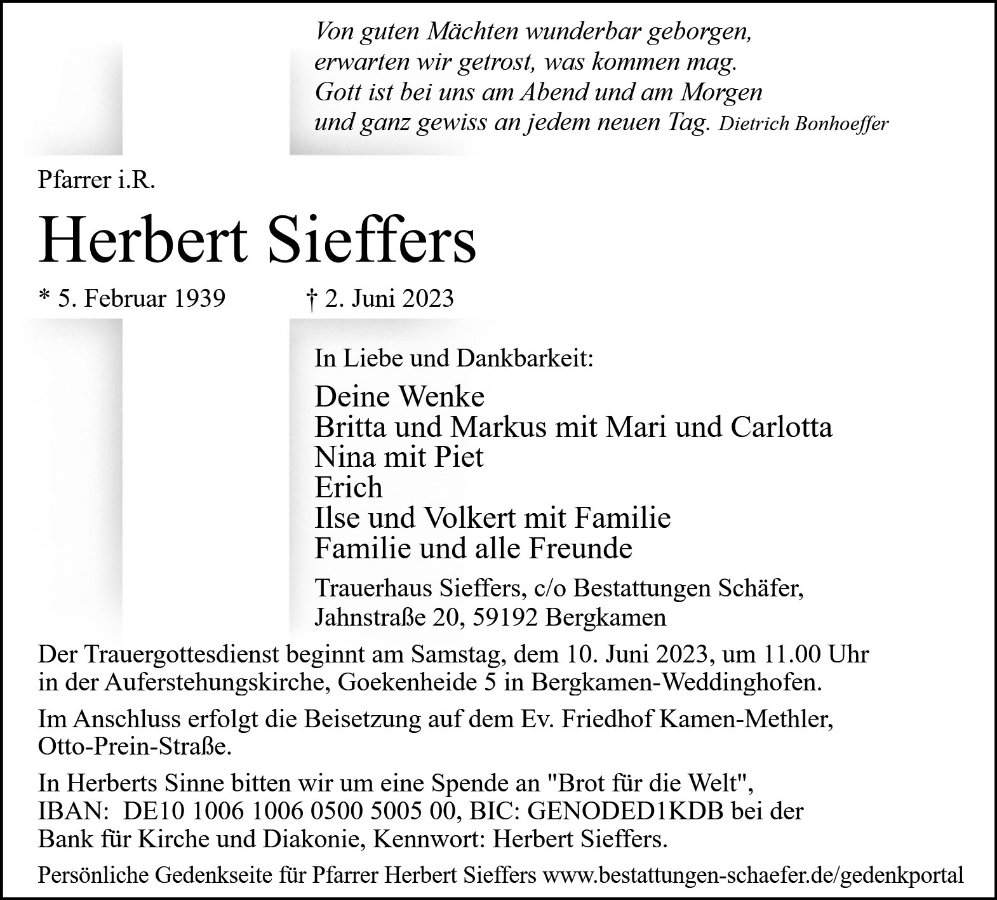Als Kind schon, nicht getauft, durfte ich, Herrn Pfarrer Sieffers, während einer Flucht, mit Tochter Britta, kennenlernen.