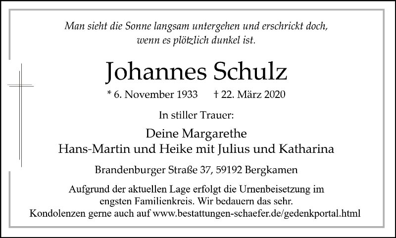 Herr Johannes Schulzgestorben am 22. März 2020