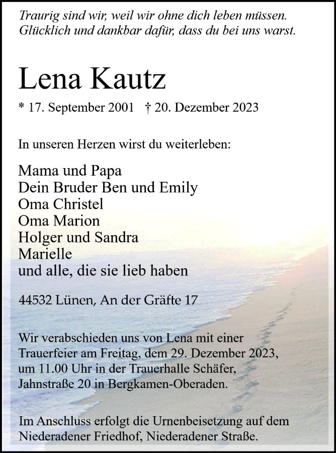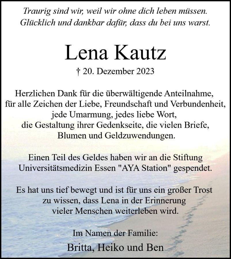 Wir denken an dich liebe Lena