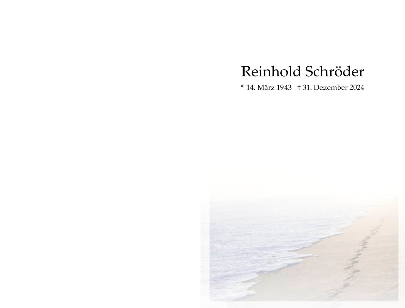 Liebe Karin, deine Benachrichtigung hat uns sehr mitgenommen. Gern hätte ich mich mit Reinhold nochmals ausgetauscht. Ich vermisste seinen Sylvesteranruf, was schon bei uns Tradition hatte. Ich vermisse jetzt schon seine Menschlichkeit und seinen Humor.