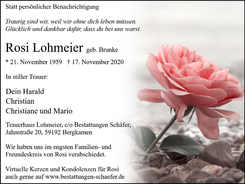 Liebe Rosi, Ruhe in Frieden.