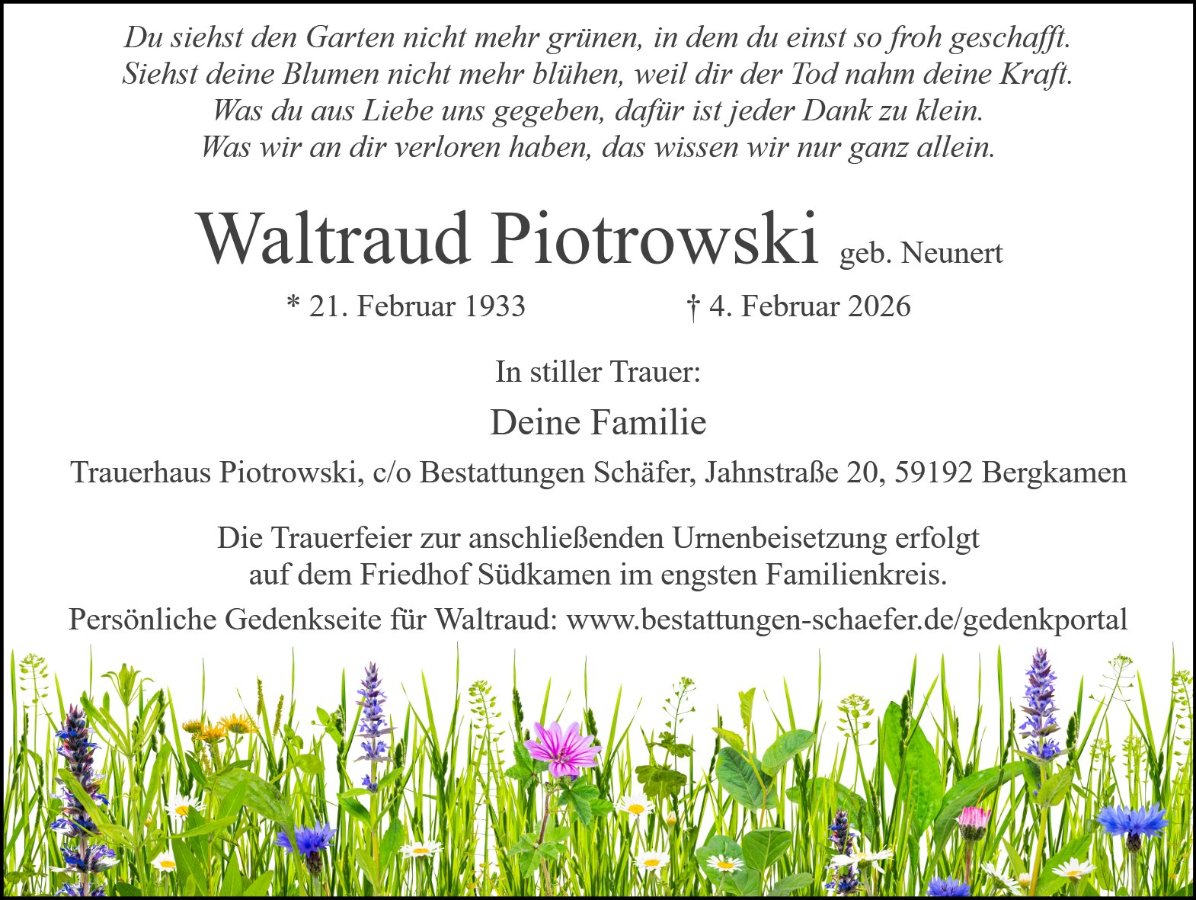 Frau Waltraud Piotrowski geb. Neunert